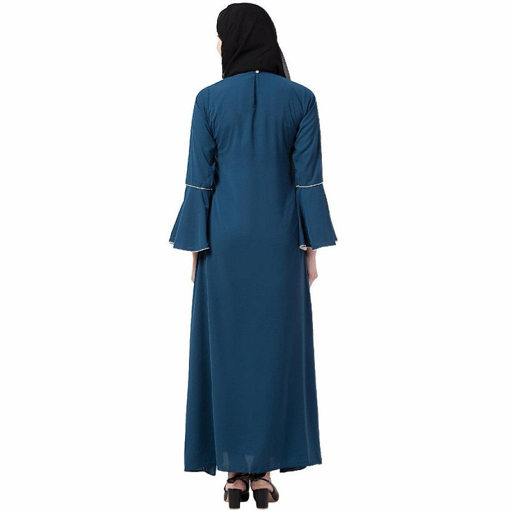 Casual A-line abaya with bell sleeves- Teal Green