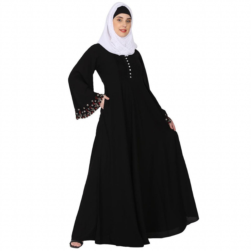 Fashionable Umbrella abaya with embroidery work - Black
