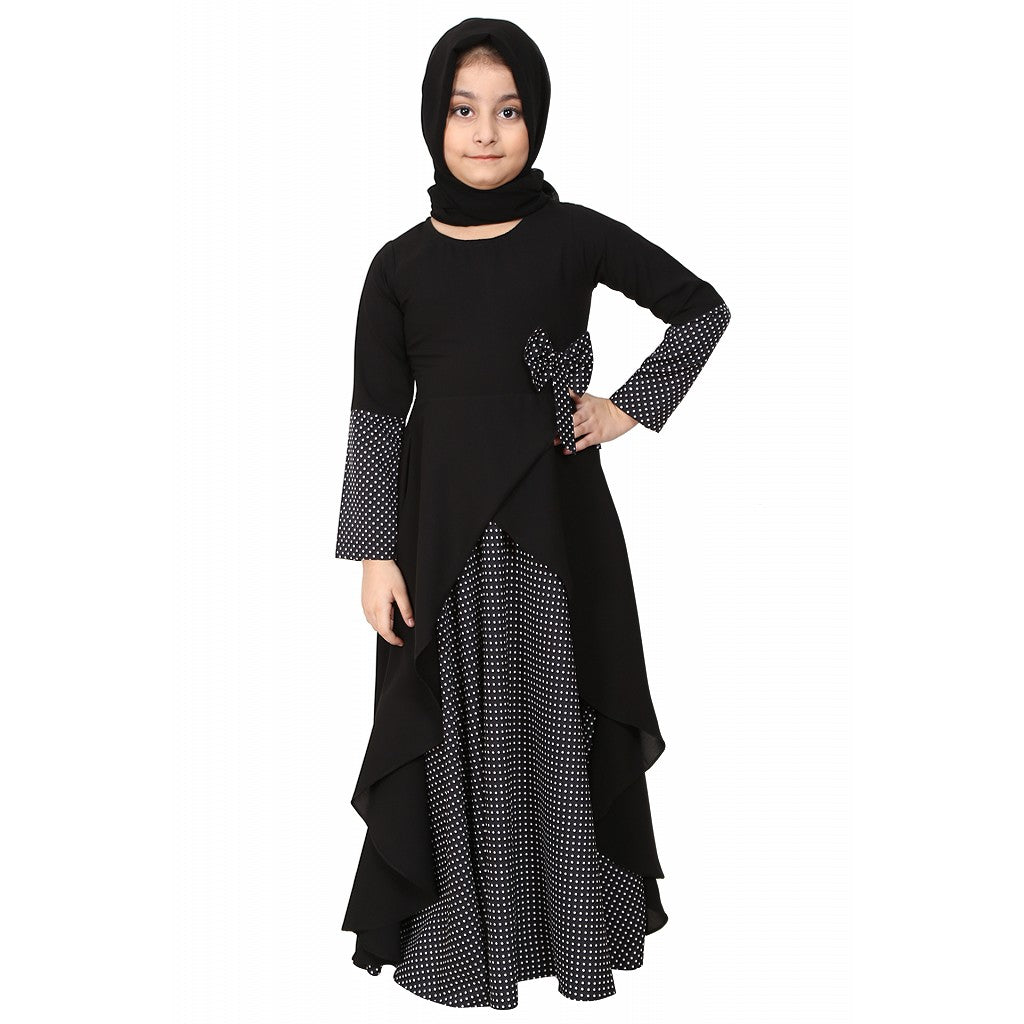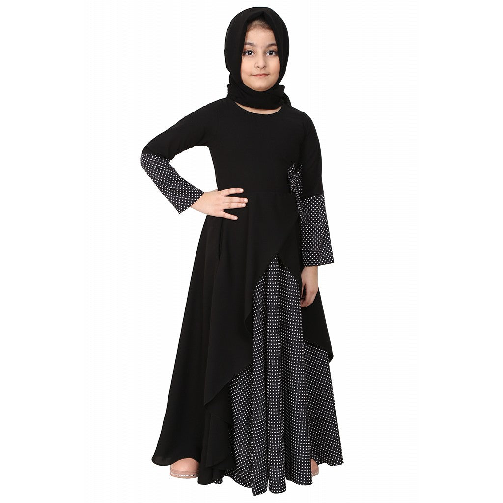 Polka dotted asymmetrical dress for kids- Black