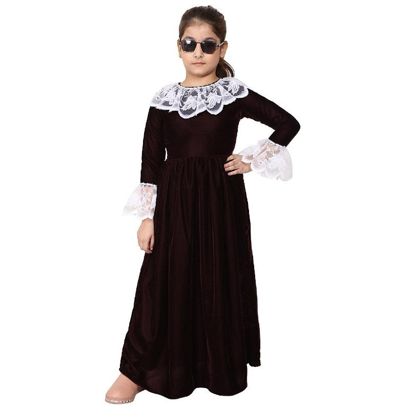 This Dress abaya for kids has been crafted from premium velvet fabric. This piece is perfect for party wear. You can consider this article as a luxury Gown. One of the best Dress for any special occasion. If you are looking for any party wear Modest piece for kids then go for it without any hesitation.