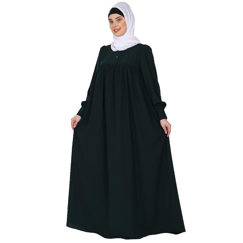 SKU:Abaya-BT-PAB-004-Bottle Green-1