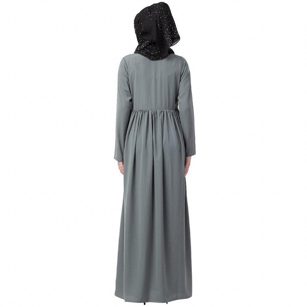 Front open abaya with pintucks- Grey